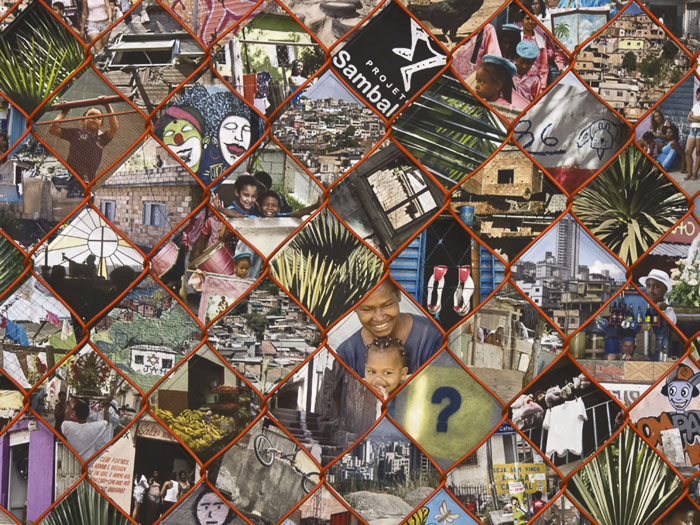 Tapaçaria weaves images from three Belo Horizonte favelas with images from “Inhotim” an art park, nature preserve, and spectacular botanical gardens located outside the city. I am contrasting “Inhotim,” visited primarily by middle class, wealthy Brazilians, and international tourists interested in world-class contemporary art and exotic nature, with the favelas, which have their own unique urban “beauty” to highlight these important social issues in Brazil, exacerbated by the World Cup and upcoming 2016 Summer Olympics. Witness their current political crisis.